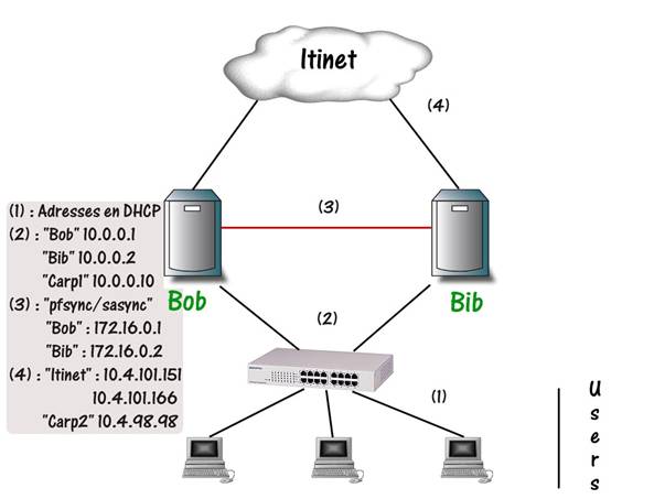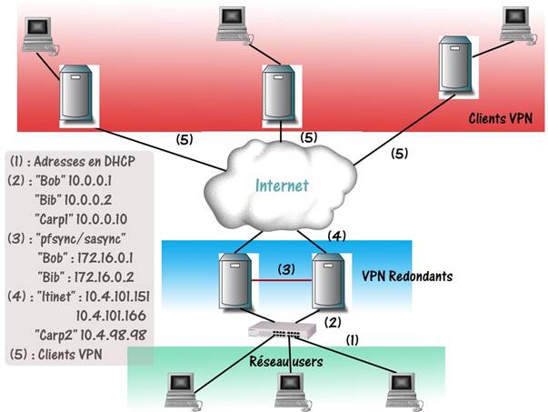 - Mise en place de la redondance (CARP, pfsync, sasync)
