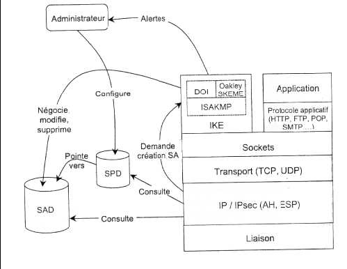 On note à la vue de ce schéma qu'IPsec repose sur le protocole IKE, qui